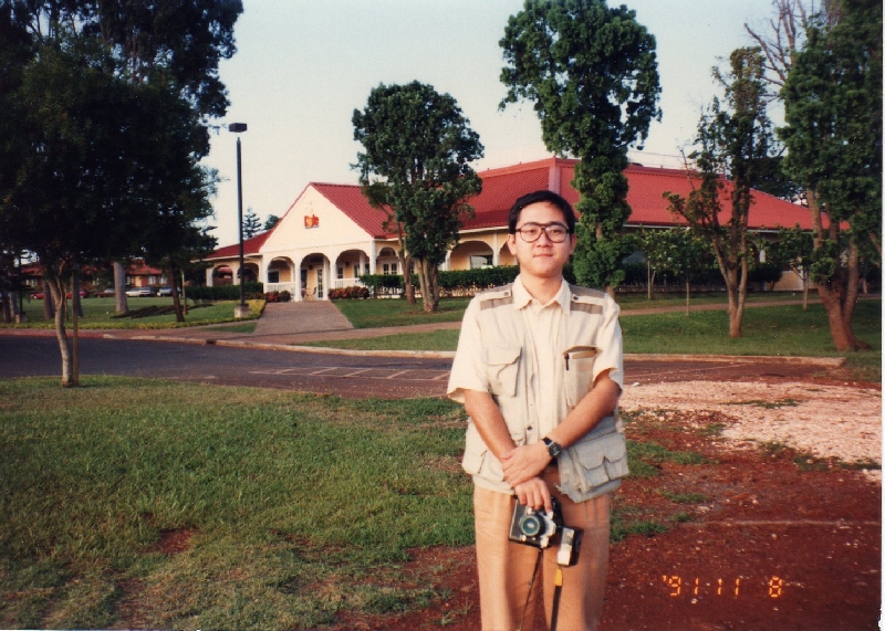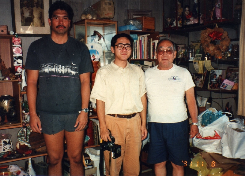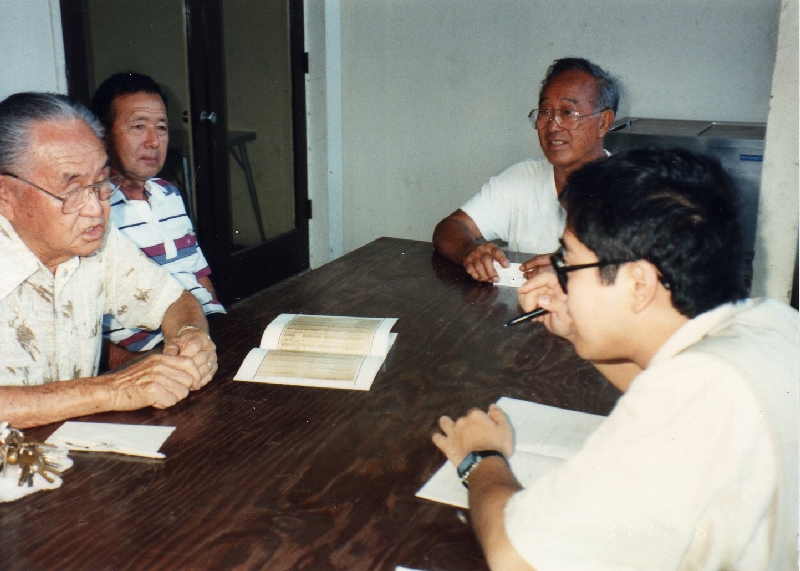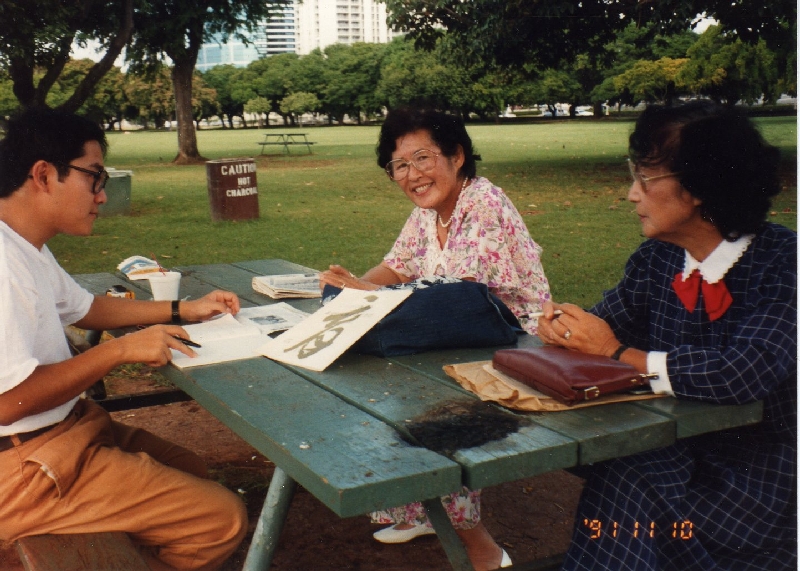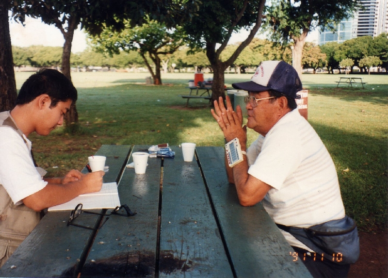 アラモアナビーチそばの公園で玉応次郎さんの話を聞く